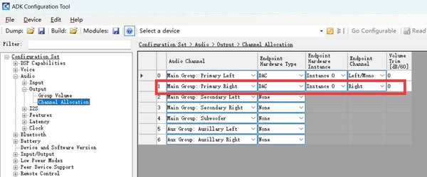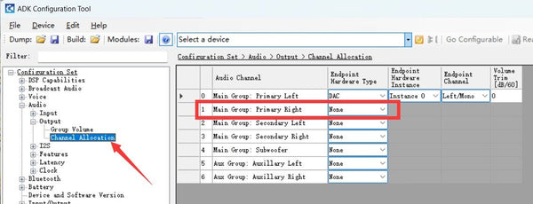 Step3: Configuration set->Audio->Output->Channel Allocation.
